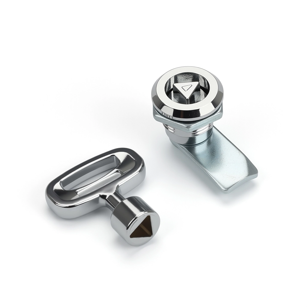 Norėdami patikrinti kokybę, paprašykite nemokamo Cam Lock for Utility Enclosures pavyzdžio. Šis tinklinės spintelės užraktas pasižymi kompaktišku, erdvę taupančiu dizainu, todėl jį patogu naudoti buitinėse spintelėse. Pasukus raktą suaktyvinamas vidinis kumštelio mechanizmas, kuris patikimai užfiksuoja duris, kad netyčia neatsidarytų.