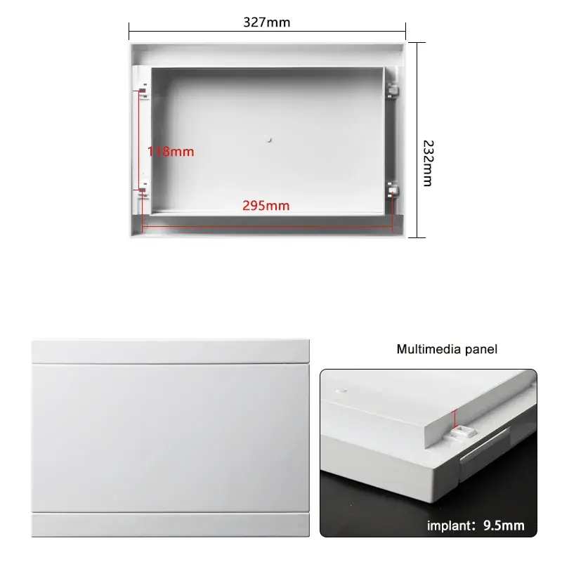 Centralizuotas namų silpnų elektros linijų valdymas, kad būtų išvengta kelių įrenginių išsklaidyto įdėjimo. Naudojant vizualizacijos langą, yra „Flip“ dangtelio dizainas, skirtas naudoti stiprių maitinimo dėžučių klientams patogiau ir praktiškiau bei saugiau. „Naminė atvira daugialypės terpės sankryžos dėžutės“ skydelis yra pagamintas iš ABS liepsnos sulėtėjančios medžiagos, saugios ir patvarios, veiksmingai apsaugo vidinę įrangą.
