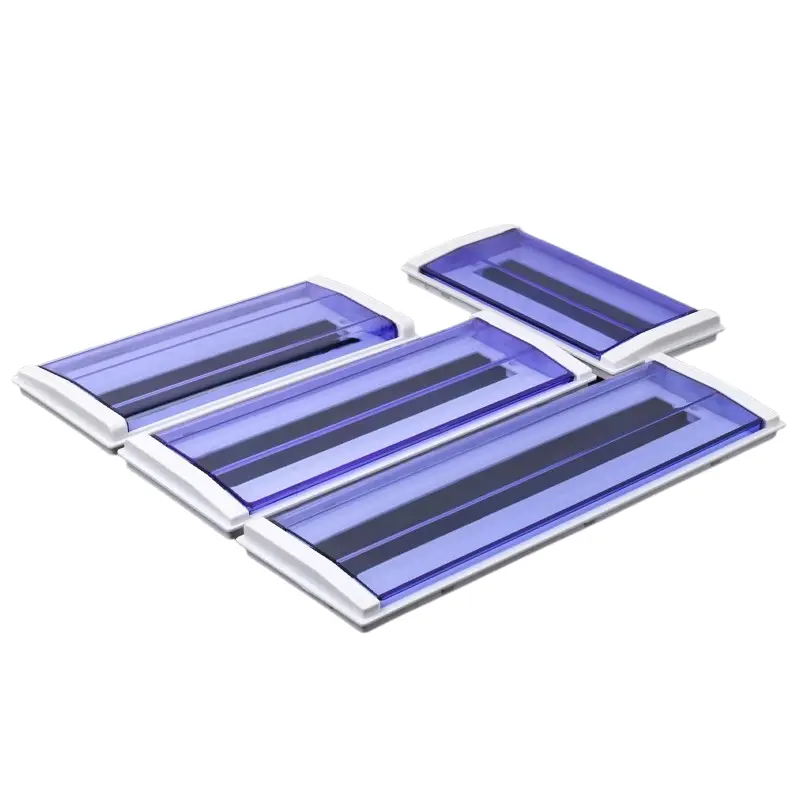Aukšto dangtelio plokštės yra vienodai mėlynos ir pagamintos iš ABS, tai yra atsparus smūgiams, anti-deformacijai, antipirenams, stipresniems nei paprastas plastikas ir sumažina ugnies, lengvos ir lengvai montuojamos, atsparios korozijai ir tinkamos ilgalaikiam naudojimui riziką.