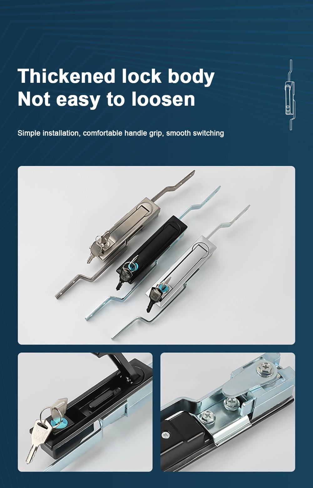 Paprastai klientams mes suteikiame nuolaidą pagal užsakytą kiekį. Nemokami plieninių durų spynos, skirtos aukšto saugumo ir ilgaamžiškumo poreikių scenarijams. Produktai yra struktūriškai stiprūs, kad atlaikytų dažną perjungimą ir išorinę žalą.