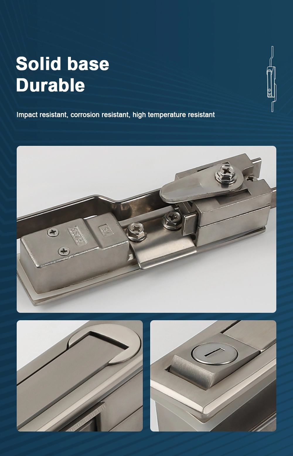 Nerūdijančio plieno durų užraktas yra didesnis atsparumas rūdims ir atsparumas korozijai, aukšta temperatūra gali prisitaikyti prie atšiaurios aplinkos.