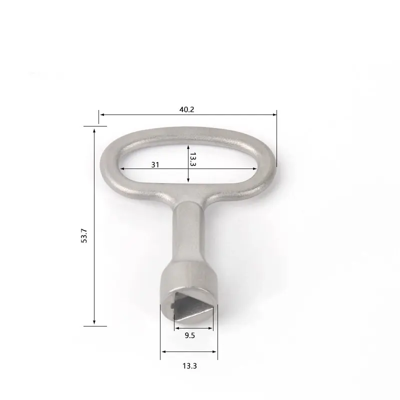 Nerūdijančio plieno trikampio raktas yra skirtas naudoti su trikampiais kumštelinių kumščių spynomis, todėl jis tinka įvairioms reikmėms, įskaitant padavimo spinteles, biuro baldus, prietaisų įrangą ir elektros valdymo spinteles.